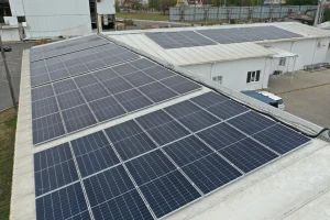 трехфазный инвертор с четырьмя МРРТ-трекерами и естественным охлаждением, обеспечивающий бесшумную работу - Установленные фотомодули мы разместили на крыше предприятия под углом 7 градусов. Поле из панелей заняло общую площадь 305 м2.